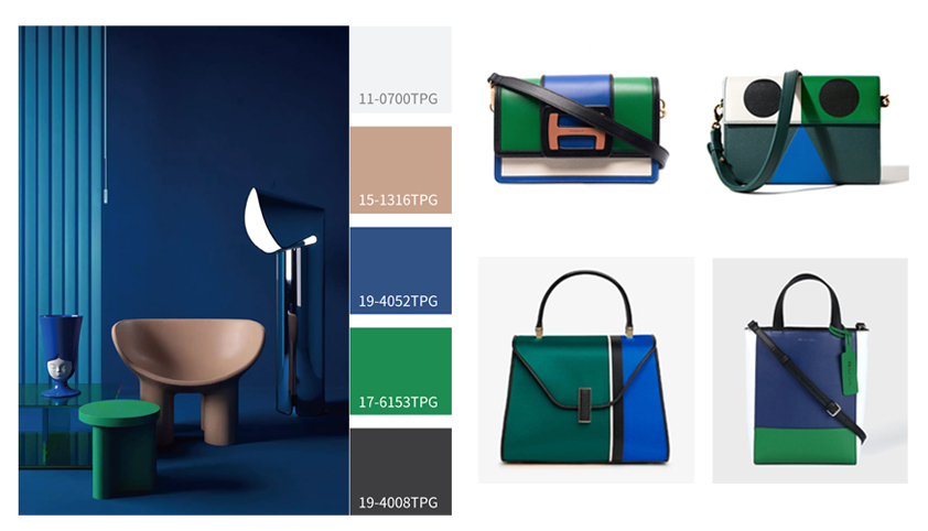 Classic blue and fern green belong to the same cool color, giving people a calm and quiet visual feeling, showing both a powerful and refreshing effect.The rich and fresh color combination, and then black, white and other colorless color as a separate accent, so that the bag shows the charm of fashion.