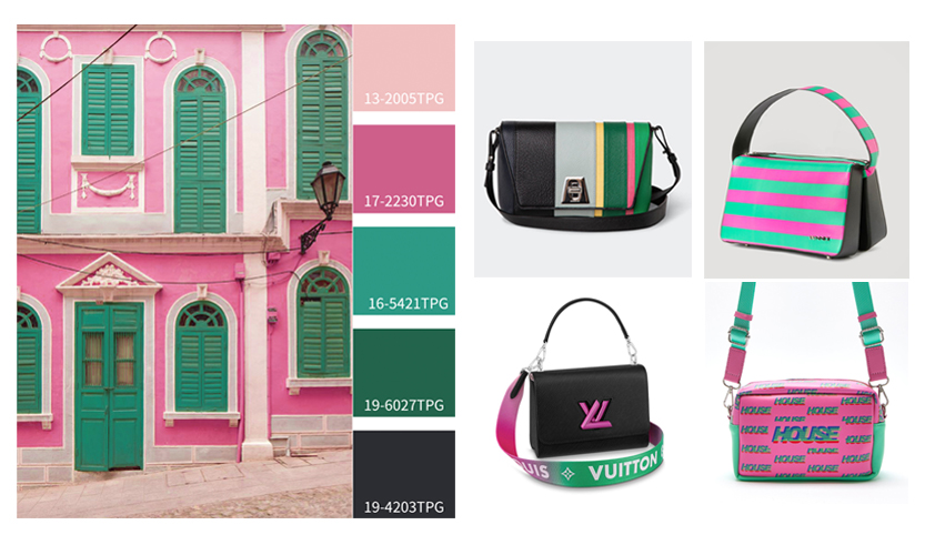 When the gorgeous blush rose meets sea green collision, and then with black as a transition color, it will make people feel like being in a fairy tale like a good feeling. Refreshing sea green makes the blush rose more charming and dynamic, and the partial embellishment on the bag, bright and light, but not too flamboyant, the beauty is just right.